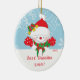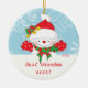 Os melhores enfeites de natal bonitos do boneco de neve da avó nunca que caracterizam um boneco de neve precioso doce que veste um chapéu vermelho, polca vermelha pontilharam mitenes e um lenço verde & vermelho da listra e foram ajustados em uma luz - fundo azul com flocos de neve. Fácil personalizar com sua mensagem! Um presente maravilhoso do Natal da avó dos netos dos netos sure a ser estimados por muitos próximos anos. Visite-nos www.zazzle.com/celebrateitornaments para ornamento grandes de uma avó dentro sobre 40 nomes da avó! !