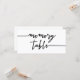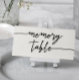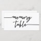 Cartão branco de mesa de memória para um funeral ou serviço de memória em um design branco e preto com um roteiro em negrito. Placa de mesa de memória branca com um script preto.