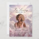 Esta elegante Carta de Homenagem do Memorial da Coleção Floral (ID: FLR001) proporciona uma forma serena e reconfortante de honrar e lembrar um ente querido que passou. Apresentando um lado frontal personalizável onde você pode adicionar uma foto e um texto personalizado, este cartão oferece um belo pano de fundo de nuvens etéreas e luz radiante, criando um tributo pacífico e elevador. O verso inclui um poema sincero, acrescentando uma mensagem emocionante ao seu memorial. Perfeito por enviar como guardiã aos amigos e à família, este cartão garante que a memória do seu ente querido seja apreciada para sempre. Informações adicionais: Tamanho: Tamanho padrão do convite Frente: Foto personalizável e texto Voltar: Poema de felicidade Alta qualidade, impressão a cores de cheio