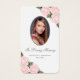 Cartão de memória floral, cor-de-rosa-pincel e prateado, elegante/cartão de oração fúnebre com uma foto enfeitiçada com rosas cor-de-água cor-de-rosa-pincel e flores de hálito de bebê em um plano de fundo embebido.