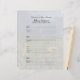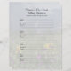 Esta página de preenchimento personalizado de 8,5" x 11" é personalizada e perfeita para preencher os Livros Memoriais ou Livros de Convidado. Este papel de preenchimento de classificadores é fácil de personalizar - expressar seu próprio sentimento, alterar nome e excluir ou modificar datas. A página é pré-formatada na frente para que os participantes adicionem suas informações de contato e uma mensagem ao entrar, com 4 nomes por página. Voltar tem o design de fundo, mas não há texto. Você precisará bater buracos para ajustado seu encadernador. Binder correspondente é zazzle ID 127181113594964663. Design de fundo é uma bela paisagem de montanhas e flores silvestres. Todos os Direitos Reservados © 2018 Alan & Marcia Socolik