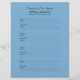 Esta página de preenchimento de classificadores personalizados x 11" de 8,5", em azul-claro com letra preta, é personalizada e perfeita para preencher o estilo de classificador Memorial Books ou Guest Books. Este papel de preenchimento de notebook é fácil de personalizar - expressar seu próprio sentimento, mudar o nome e excluir ou modificar datas. A página é pré-formatada para que os participantes adicionem suas informações de contato e uma mensagem ao entrar, com 4 nomes por página. Você precisará bater buracos para ajustado seu encadernador. Todos os Direitos Reservados © 2014 Alan & Marcia Socolik