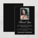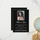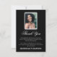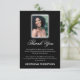 Cartão de agradecimento de funeral com um clássico fundo preto, uma foto de seu ente querido e um modelo de apreciação de simpatia personalizável facilmente editável.