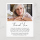 Um belo funeral e um cartões de agradecimentos memorial amigável ao orçamento que mostra a foto do seu ente querido num quadro de arco e "Forever In Our Hearts" na tipografia elegante. Adicione seu nome e data de nascimento e morte. No verso, "Obrigado" está em um script de estilo manuscrito. Adicione uma foto adicional e personalize sua mensagem de obrigado e uma mensagem de inspiração opcional.