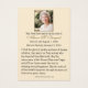 Este tradicional cartão sagrado católico apresenta uma imagem tenra de aquarela das Ruas. Thérèse do Criança Jesus, conhecido como A Pequena Flor, segurando gentilmente rosas e um crucifixo, rodeado de flores e aves. O verso inclui espaço para uma foto, o nome e as datas dos desaparecidos, e uma oração reverente para a reposição de sua alma. Uma merecedora fúnebre para honrar um ente querido e confiá-lo à intercessão da Bênção Virgem Maria e todos os Santos.