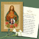 Este tradicional memorial fúnebre católico apresenta uma imagem ao estilo Pré-Raphaelita do Coração Sagrado de Jesus, renderizado com tons vívidos de tecido, linhas fluentes e detalhes radiantes. Abaixo da imagem de Nosso Senhor, um quadro circular permite a inclusão de uma fotografia acarinhada do seu amado. Cercado por rosas exuberantes e uma fronteira de safra suave, o design reflete o compaixão e a promessa do Céu. O verso contém um nome, datas, e uma oração clássica para os fiéis falecidos — uma lembrança elegante e sincera de uma alma agora confiada ao Divino Coração do Cristo.