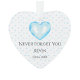 Honre a memória do seu bebê precioso com este belo nome em forma de coração. Projetada cuidadosamente para proporcionar conforto e memória, esta obra corajosa é perfeita para os pais que lamentam a sua perda ou como um presente significativo para os convidados funerários para acalentar a memória do seu pequeno para sempre."