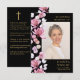 Cartões de oração de fotos, memoriais, de simpatia funerária em preto e ouro, com flores cor-de-rosa. Você pode personalizá-lo com sua oração ou poema escolhidos, se preferir. Projetado por Thisnotme©
