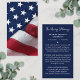 American Flag Memorial Funeral Prayer Card. Este cartão de oração patriótico e memorial apresenta uma bandeira dos Estados Unidos da América em frente. Este cartão de oração fúnebre da bandeira americana sem foto é um guardião tesouro, serviços fúnebres militares e um serviço de memorial veterano ou celebração da vida. Em Amar Memória Militar Memorial Americano Cartas De Oração De Bandeira. Simpatia Patriótica Cartão de Oração Memorial Funeral