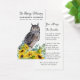 Watercolor Cardinal e Girassóis com eucalipto Simpatia de Oração Funeral Cartões de Oração Funerários. Este moderno, mas elegante cartão de oração memorial, apresenta uma coruja branca num buquê de girassóis e eucalipto. Frente "In Loving Memory" Personalize este cartão de oração funerária memorial com o nome e datas dos seus entes queridos e o sentimento. Volte ~ 'Que você sempre caminhe ao sol' Poema, que pode ser personalizado, por favor, alcance se você quiser uma design com um poema específico que não seja. Este cartão de oração memorável será um guardião precioso, para os serviços funerários e para a celebração da vida. COPYRIGHT © 2020 Judy Burrows, Black Dog Art - Todos Os Direitos Reservados. Memorial Funeral Prayer Card Owl Sunflower