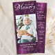 Simpatia Ametista Roxa Cartões de Oração Funerários. Este simples cartão de oração memorial apresenta um design luxuoso de ametista roxo. Frente "In Loving Memory" Personalize este cartão de oração do funeral memorial com a foto, o nome e as datas de seus entes queridos e o sentimento. Volte ~ 'Que você sempre caminhe ao sol' Poema, que pode ser personalizado, por favor, alcance se você quiser uma design com um poema específico que não seja. Este cartão de oração memorável será um guardião precioso, para os serviços funerários e para a celebração da vida. COPYRIGHT © 2020 Judy Burrows, Black Dog Art - Todos Os Direitos Reservados. Memorial Prayer Cartão Funeral Bookmark Purple