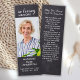 Rústica Simpatia do Quadro Funeral de Oração Marcador. Este simples marcador de poema memorial apresenta um design de quadro chalkboard rústico. Frente "In Loving Memory" Personalize este cartão de marcador de oração do funeral com seus entes queridos, foto, nome e datas, e sentimento. Volte ~ 'Que você sempre caminhe ao sol' Poema, que pode ser personalizado, por favor, alcance se você quiser uma design com um poema específico que não seja. Este cartão de oração memorável será um guardião precioso, para serviços funerários, favores funerários e celebração de presentes vitalícios. COPYRIGHT © 2020 Judy Burrows, Black Dog Art - Todos Os Direitos Reservados. Memorial Rustic Memorial Funeral Poem Bookmark