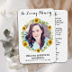Simpatia moderna de girassol Cartões de oração funerários. Este simples, mas elegante cartão de oração memorial apresenta um eucalipto verde moderno e um elegante design de girassóis. Frente "In Loving Memory" Personalize este cartão de oração do funeral memorial com a foto, o nome e as datas de seus entes queridos e o sentimento. Poema 'Miss Me', que pode ser personalizado, por favor, contacte se quiser uma design com um poema específico que não. Este cartão de oração memorável será um guardião precioso, para os serviços funerários e para a celebração da vida. COPYRIGHT © 2020 Judy Burrows, Black Dog Art - Todos Os Direitos Reservados. Memorial Sunflower Foto Funeral Prayer Card