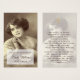 Um cartão de oração memorial com um ar vintage. Na frente, há uma foto sépia vintage (a ser substituída) e, sobre ela, um retângulo branco transparente com o texto "em memória amorosa", o nome escrito em um roteiro caligráfico elegante e os anos.