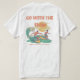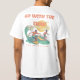 This is a design of the written words LESSONS LEARN at the front and the written words GO WITH THE FLOW at the back with water and men surfing with quote below.