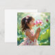 Uma doce ilustração de uma menina cheirando uma flor de Lotus. Envie um cartão com a natureza e boas vibrações a um amigo ou membro da família com esta doce ilustração do ai.