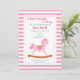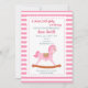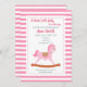 Uma garotinha está a caminho! Vamos chá a futura mãe! Este convite de chá de fraldas de cavalo rosa, mínimo mas atraente, é perfeito para a ocasião. Ele apresenta um cavalo de balanço antiquado em rosa, decorado com pequenos corações. Nas costas, há um grande coração e listras cor-de-rosa. Este modelo de convite para chá de de menina pode ser facilmente personalizado com os detalhes do seu chá de fraldas e você pode alterar a fonte, o tamanho ou a cor de qualquer texto.