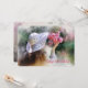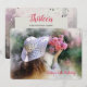 Uma bela imagem de uma jovem, com as costas viradas, segurando um buquê de flores cor-de-rosa. Ela tem cabelos castanhos longos e está vestindo um chapéu. (Pix). <br/>() O cartão é fácil de personalizar com sua redação, fonte e cor da fonte.<br/>() Não exatamente o que você está procurando? Todos os nossos produtos podem ser personalizados para atender às suas necessidades sem custos adicionais.<br/>() Basta entrar em contato conosco em askcottonlamb@gmail.com.<br/>() Coordenar os produtos disponíveis: Apenas nos pergunte!
