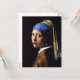 Menina de Johannes Vermeer com convites de um brinco da pérola. Pintura a óleo em canvas cerca de 1665. Chamou frequentemente a Mona Lisa do norte, menina com um brinco da pérola é a pintura a mais famosa de Johannes Vermeer. O brinco da pérola serve como um ponto de foco da referência de que as três esferas diferentes da cor da pintura emanam. O xaile azul e amarelo do lenço e da mostarda é destacado igualmente inteligente pelo colarinho branco austero, pelos brancos dos olhos, e pelos lábios vermelhos molhados. Um grande presente para fãs de Johannes Vermeer, pintura barroco, e art. holandês.