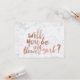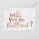 Uma tipografia moderna, original e chic de lettering à mão com pincel em folha de ouro rosa falso será o meu cartão de menina das flores em um fundo de mármore branco elegante e simples