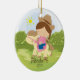 Personalize os enfeites de natal triguenhos pequenos bonitos datado da menina do cavaleiro de horseback da vaqueira ajustados em um fundo da grama & da árvore. O ornamento bonito do cavalo caracteriza a menina a mais doce que monta seu pônei. Um presente do Natal da maravilha sure a ser estimado por muitos próximos anos.