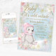 Garota é um convite frio fora do chá de fraldas com um lindo urso bebê em um lindo fundo de neve floral. Este convite para chás de fraldas de urso é facilmente personalizado para o seu evento simplesmente adicionando os seus detalhes. Querida, é frio fora do texto não pode ser mudado.