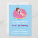 Um convite bonito que seja grande para o verão! Caracteriza uma menina em um terno de natação roxo com uma bebida em sua mão, lounging na piscina em um flutuador cor-de-rosa da natação da filhós do glacé com arco-íris polvilha. Personalize facilmente com seus detalhes do partido no espaço fornecido.