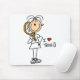 Uma figura menina da vara com uma raquete de tênis e o texto que me lê "amam o tênis" são caracterizados nesta figura customizável mousepad da vara do jogador de ténis.