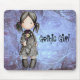 Uma menina bonita no estilo gótico. Está vestindo um vestido preto e branco das bolinhas e um lenço roxo, tem o cabelo preto nas tranças. No lenço está vestindo um broche do crânio, com seu braço direito está mantendo um luxuoso pequeno do gato… naturalmente mais inoperante do que vivo:) tem uma expressão leve surpreendida em sua cara e é incredibly bonito. Está estando contra fundo floral roxo/azulado. O mousepad vem com o texto "menina gótico" mas você pode personalizá-lo com seus próprios se você gosta. De minhas tinta e aguarela originais da pintura no papel.