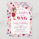 Menina Loura Rosa Ladybug Primeiro Convite de Aniversário