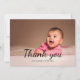 Partilhe a sua sincera gratidão com este cartões de agradecimentos moderno de menina, perfeito para anunciar a sua chegada ou agradecer aos convidados depois de um chá de fraldas. Apresentando sua própria fotografia adorável e "Obrigado" em um roteiro elegante e ousado, este design emparelha o estilo do eterno com um toque pessoal. Personalize facilmente a mensagem e os nomes para criar uma manutenção significativa que comemore sua nova filha e todo o amor e apoio de amigos e familiares. Ideal para chás de fraldas, anúncios de nascimento e comemorações de recém-nascidos.