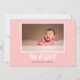 Celebre sua chegada com este convite de chá moderno e elegante para uma menina, apresentando uma borda e espaço cor-de-rosa para bebês, para adicionar sua própria foto de precioso. A carta anuncia ousadamente "É uma menina!" em uma fonte na moda, contemporânea, perfeitamente misturando design minimalista com detalhes charmosos. Personalize a mensagem e os nomes para criar um convite sincero que acolha calorosamente amigos e familiares para a sua celebração especial.