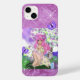 Menina Sentada com Flores e Borboletas, capa de telefone roxa. Fantasia, é personagem de anime.