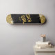 O skate personalizado brilhante preto e Dourado com o design de aspas de texto "SK8 GRL" e o nome opcional personalização apresentam um trabalho de arte impresso a negrito falso com explosões de borda reluzente, infundidas com um design desportivo, perfeito como decoração de parede, manutenção ou skate de design feminino a ser usado no parque.