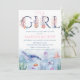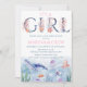 Cute É uma garota sob o convite do chá de fraldas do mar que apresenta uma baleia a cores-d'água, tartaruga marinha, água-viva, polvo, goldfish, conchas e plantas de coral.