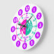 Codificado de cores para o relógio gráfico das meninas colorido para ajudar seu filho a ler um relógio. Este apoio pedagógico colorido inclui minutos e horas e passadas e a brincadeira de fazer da criança de contar o tempo. Cor do relógio codificada em rosa, roxo e aqua em branco. Projetada exclusivamente por Sarah Trett. Um excelente para o quarto de uma garotinha que está aprendendo a ler um rosto do relógio.