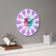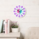 Codificado colorido do relógio gráfico de parede para ajudar seu filho a ler um relógio. Este apoio pedagógico colorido inclui minutos e horas e passadas e a brincadeira de fazer da criança de contar o tempo. Clock colorido em rosa, roxo, aqua e branco com uma borboleta branca e pode ser personalizado com seu nome de preferência. Atualmente lê Madison. Projetada exclusivamente por Sarah Trett. Um excelente para o quarto de uma garotinha que está aprendendo a ler um rosto do relógio.