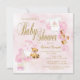 Meninas lanchonetes de bebês com adoráveis ursos bebês, blocos, poltrona elegante, coroa princesa, e uma roupa fofa com texto que você pode mudar em um lindo fundo cor-de-água rosa. Este convite para chás de fraldas cor-de-rosa e dourado é facilmente personalizado para o seu evento simplesmente adicionando os seus detalhes. Este é um design impresso sem brilho real.
