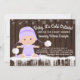 Querida, está frio fora do chá de fraldas convite com uma menina adorável vestindo um bonitinho chapéu roxo de neve em madeira rústica e fundo de neve. Esses bonitos convites para chuveiros de bebês com flocos de neve roxos são facilmente personalizados para seu evento simplesmente adicionando seus detalhes.