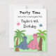 Um doce convite de dinossauros para meninas. Um dinossauro rosa e verde ao lado das palmeiras e acentuado por pequenas borboletas flutuando ao redor. Personalize com todas as informações de sua parte conforme desejado.