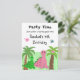 Um doce convite de dinossauros para meninas. Um dinossauro rosa e verde ao lado das palmeiras e acentuado por pequenas borboletas flutuando ao redor. Personalize com todas as informações de sua parte conforme desejado.