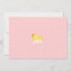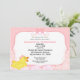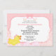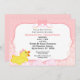 Chá de fraldas de borracha branca para raparigas com pata de borracha amarela e um fundo de pontos cor-de-rosa. O design tem bolhas cor-de-rosa e um pato bonito com um arco rosa e branco. Personalize com os detalhes do seu chá.