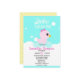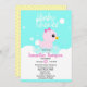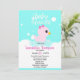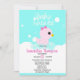 Chá de fraldas de borracha branca para raparigas com pata de borracha rosa e um fundo azul e branco. Personalize com seus detalhes de chá usando nosso modelo fácil.