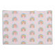 Estas capas de travesseiro de crianças modernas apresentam um lindo desenho do arco-íris, e um padrão entrelaçado. Este design branco também apresenta um lugar para você adicionar o nome da sua garota. O perfeito design colorido e moderno para seu quarto de filhos ou berçário de bebês!