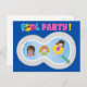 Crianças incríveis convites de festas de piscina para uma festa de aniversario de meninas no verão. Apresenta uma pop de cores brilhante e divertida num fundo azul marinho. Crianças adoráveis estão saindo numa bonito piscina oval com um conselho de mergulho.