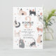 Prepare-se para se divertir com este adorável convite de aniversário "Vamos Pawty"! Perfeito para as meninas que amam gatos, este convite malhado apresenta gatinhos bonitos, chapéus de festa, balões e cores moles do arco-íris para uma vibração agradável e doce. Quer você esteja jogando uma celebração temática de gatinho ou uma festa de aniversário perfeita, este convite personalizável dá o tom para um dia cheio de diversão.