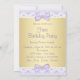 Lavanda e primeiro convite de aniversário de ouro com uma adorável princesa de safra vestindo calças de lavanda e coroa de ouro em uma lavanda bonito e renda de ouro e fundo de bolo de aniversário. Esta lavanda e convite de aniversário ouro bonitos são facilmente personalizados para o seu evento adicionando detalhes do evento, estilo de fonte, tamanho de fonte e cor e texto.