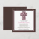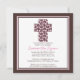 Quadrado popular cruz marrom contemporânea com flores cor-de-rosa, convite para batismo ou convite batizante para uma bebê menina.