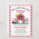 O convite de aniversário de casqueiro de uma garota bonita tem um celeiro rosa quente, ovelha, porco e trator. A borda é um padrão de xadrez rosa e branco. Este é um convite bonito para convidar os amigos do seu filho para a festa de aniversário do tema do barnyard. Há mais designs de convite para exibir na loja. O mesmo cartões de agradecimentos de design e adesivo também está disponível. O convite de aniversário do quintal cor-de-rosa-quente desta menina é adequado para uma festa de aniversário de 1rua, segundo ou terceira menina e está pronto para ser personalizado.
