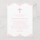 Este cartão-postal cor-de-rosa bonito é perfeito para o batismo ou batizar de uma menina. O convite apresenta uma cruz rosa e uma elegante borda decorativa rosa na parte superior e inferior da carta. O texto pode ser alterado para se adequar a uma Primeira Comunhão ou a uma confirmação. Adicione seu endereço de retorno à parte traseira e qualquer texto adicional, se desejar.